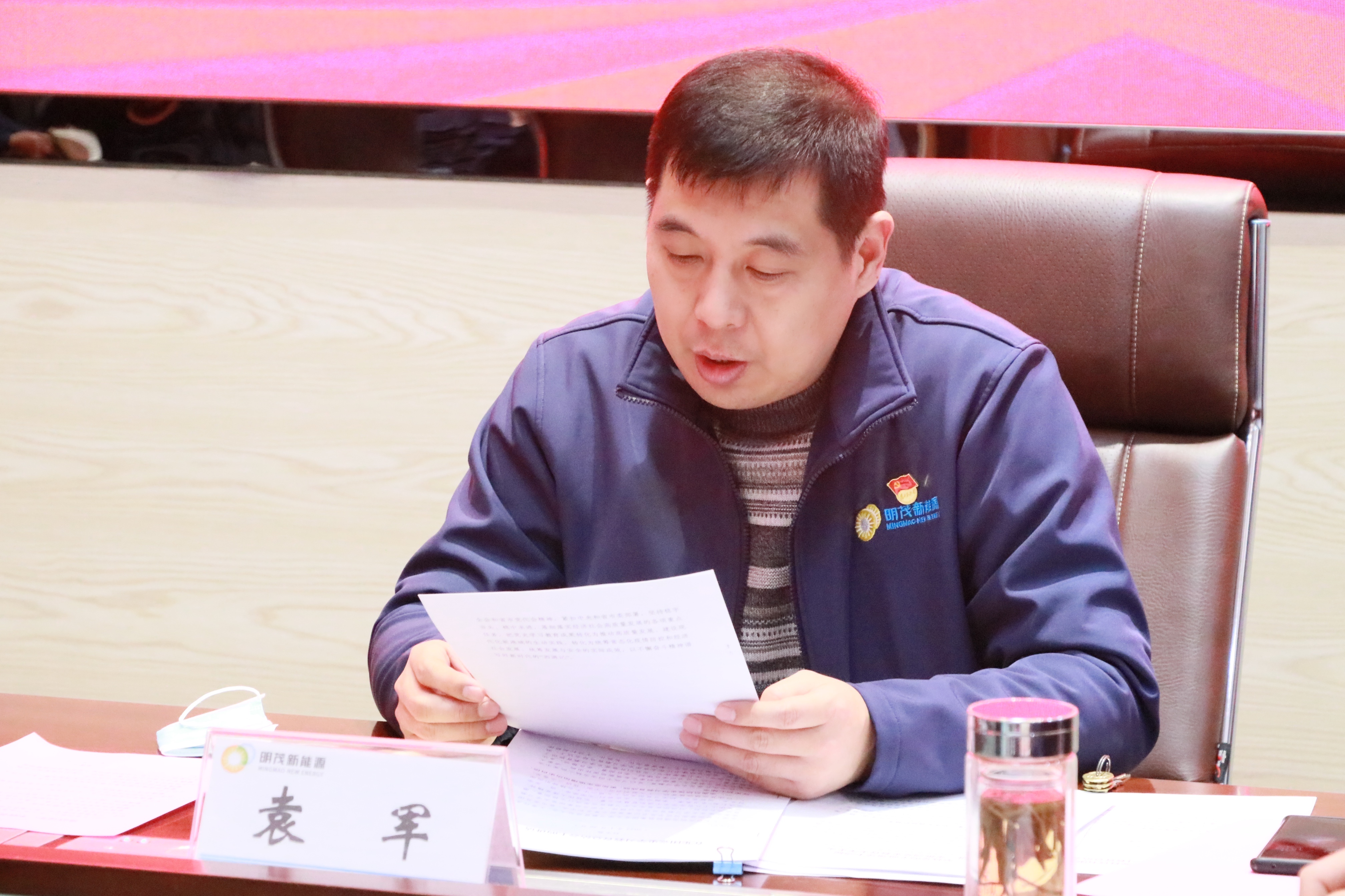 1月27日下午,明茂公司召开党史学习教育总结会议,传达学习中央、省委和市委党史学习教育总结大会精神。党总支书记、总经理袁军作总结讲话,公司领导班子成员、各部门负责人、港嘉公司党政负责人、汽车销售公司负责人、党员代表等25人参加会议。