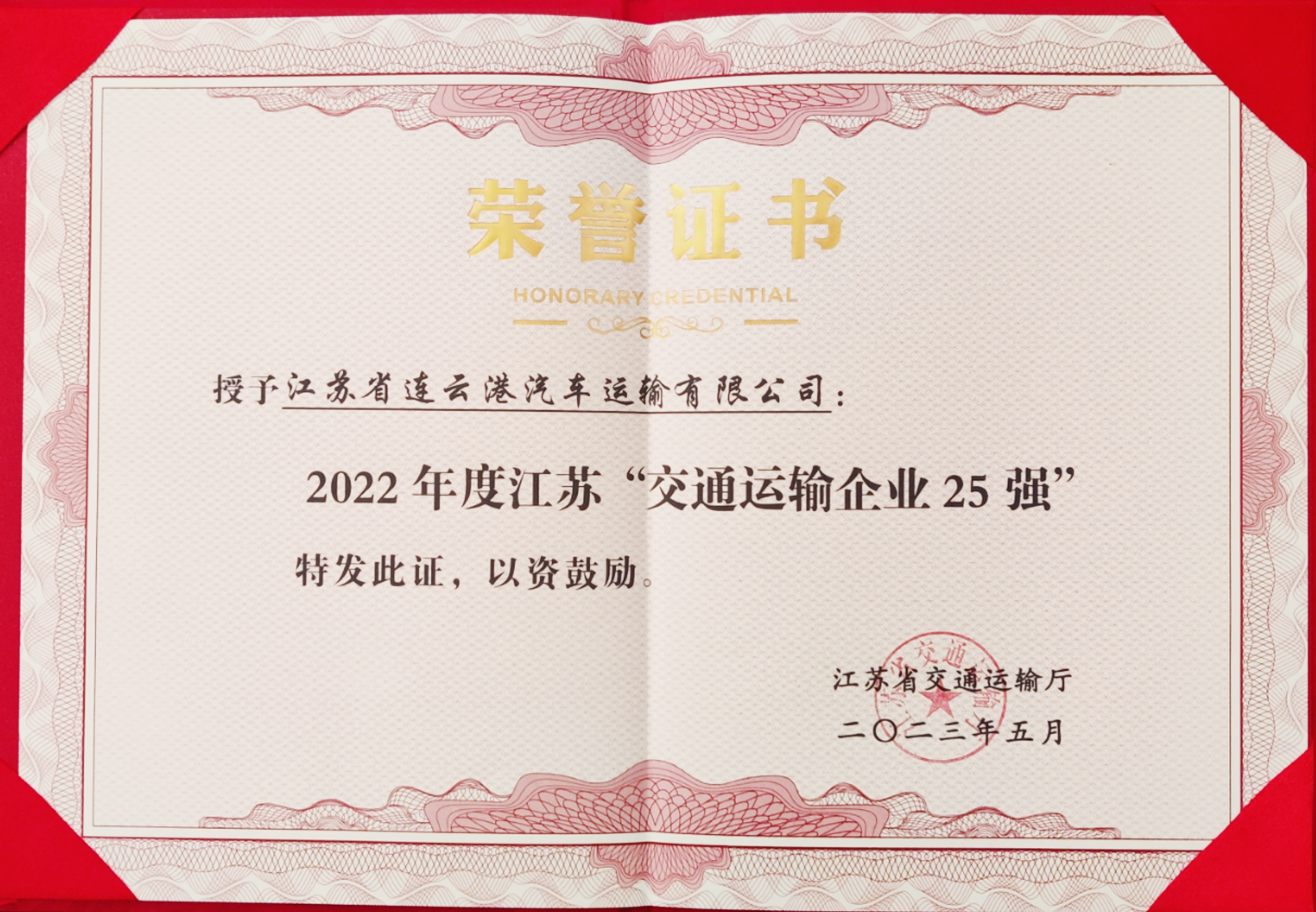 为助力交通运输企业做大做强,促进交通运输产业高质量发展,江苏省交通运输厅开展2022年度江苏“交通运输企业25强”认定活动,汽车公司积极参与评比。经过专家、工作组及领导小组审核等认定程序,汽车公司获得2022年度江苏“交通运输企业25强”荣誉称号,5月16日,江苏省交通运输厅召开认定名单发布会,为获得此类殊荣的各单位颁发了荣誉证书。