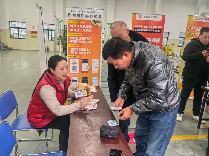 事业部工作人员现场为驾驶员讲解智慧码绑定流程:先到分公司领取智慧码,再注册嘀嗒出租司机APP,通过嘀嗒出租司机APP绑定智慧码,绑定成功后乘客通过扫码支付车费,费用即刻进入司机个人银行卡内没有延误。此智慧码是驾驶员的专属智慧码,如果后期驾驶员的智慧码出现丢失或者破损可以重新领取智慧码。工作人员鼓励驾驶员向乘客推荐使用“出租车智慧出行”小程序叫车,用小程序叫车不仅有更多的优惠政策,还可以节约乘客出行等待时间,提升出行效率,此外乘客还可以在线评价驾驶员的服务水平。