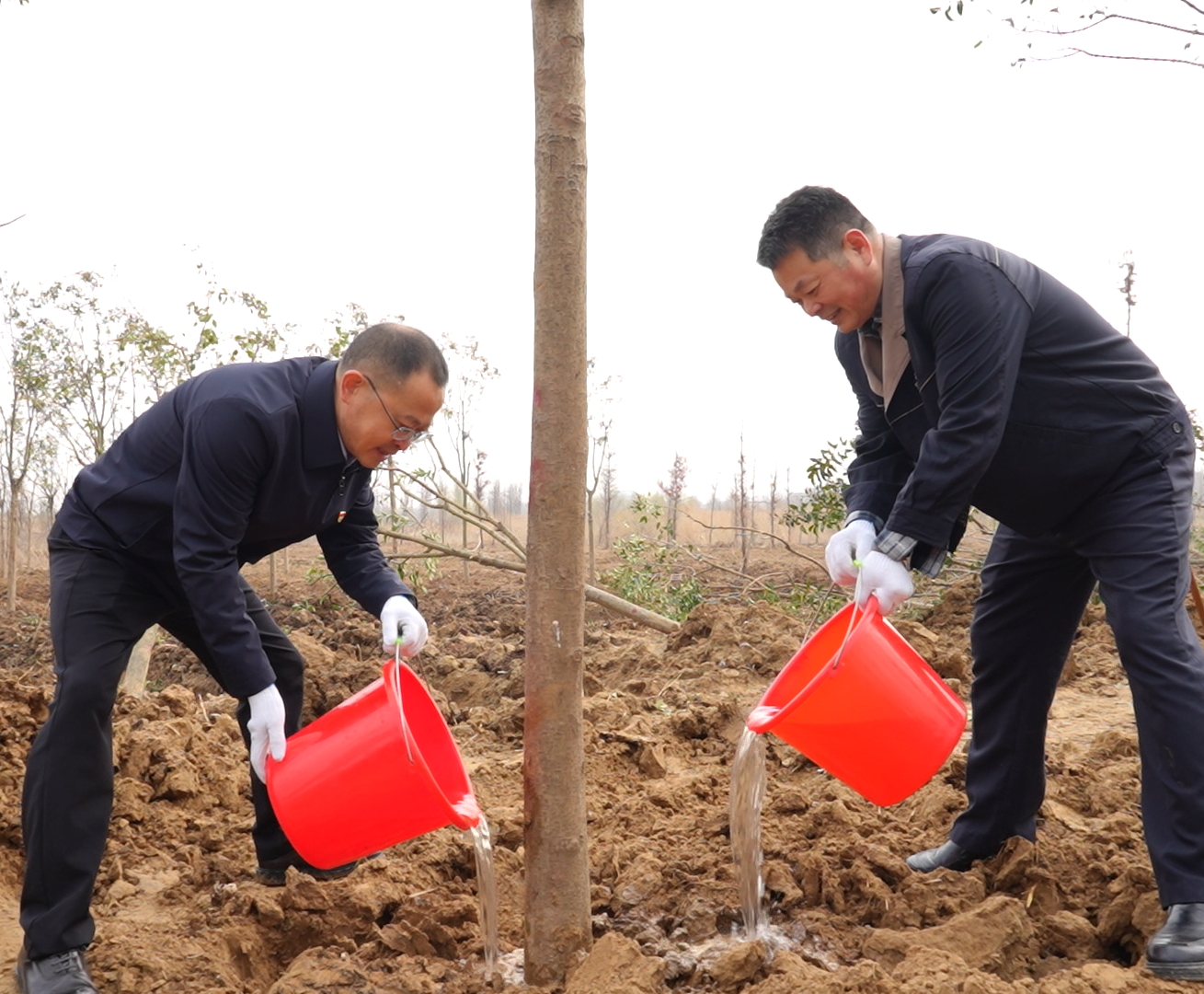 植树现场,干部职工分工协作、紧密配合,挥锹铲土、扶苗填坑,踩土定植、浇水保墒,一道道工序细致规范、一棵棵树苗精准栽种,一派干劲十足、井然有序的劳动场景。大家在树苗上悬挂廉洁寄语,“植树造林护生态,廉洁奉公为人民”“青山常绿不染尘,清风长伴不越线”……随风摇曳的廉洁寄语与新栽树苗相映成趣,提醒着党员干部“木贵正直,人贵清廉”,要像树苗一样扎根沃土、正直挺拔。