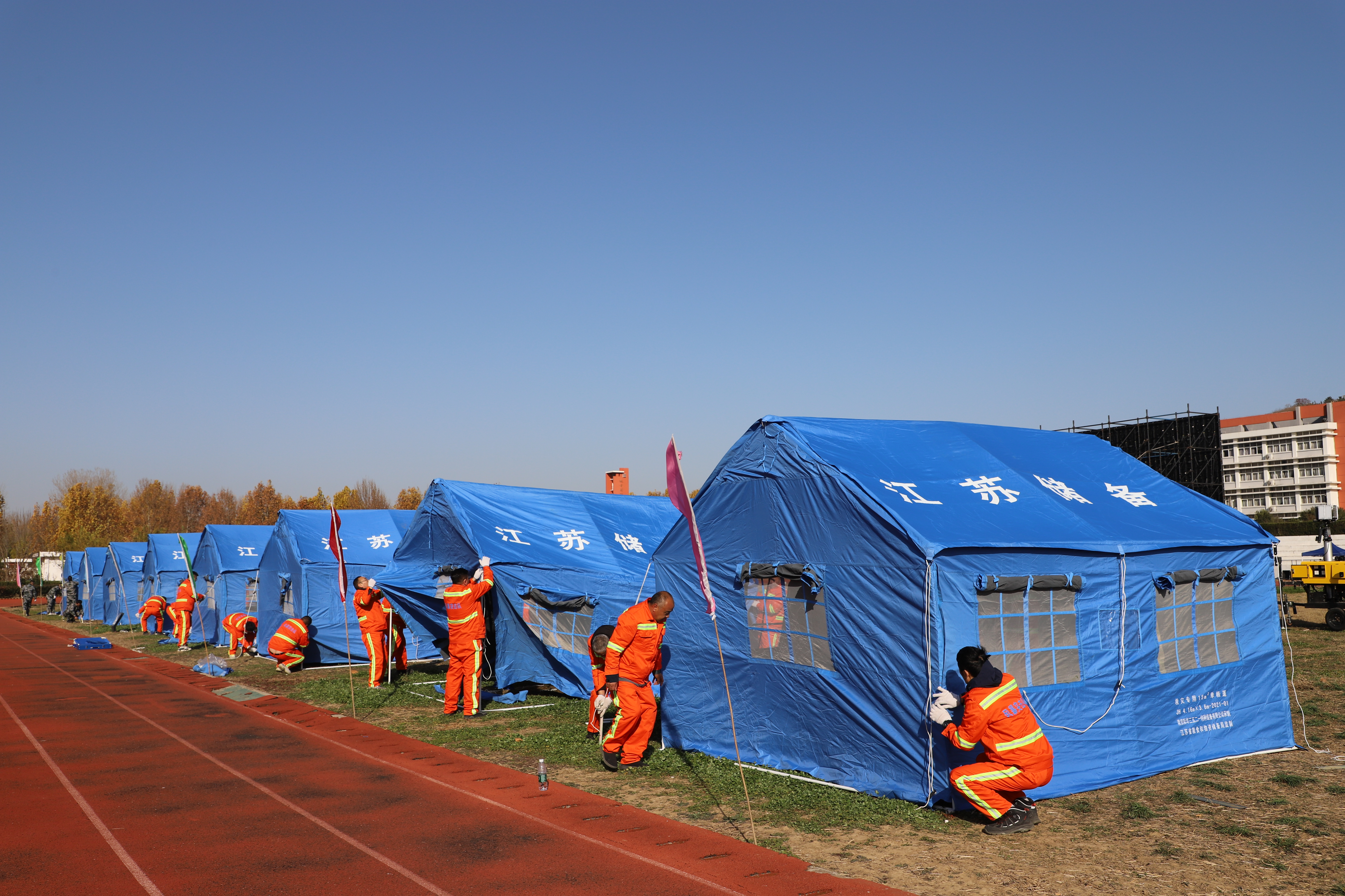 为检验自然灾害救助应急预案和救灾物资保障的科学性、针对性和可操作性,进一步增强应对突发自然灾害能力,提升灾害救援水平。11月26日上午,由市应急管理局主办,丰达公司协办的“2025连云港开发区地质灾害物资保障演练”在开发区高级中学举办,共计50名风暴突击队员参加。