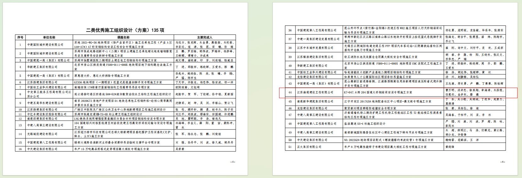 近日,江苏省建筑行业协会正式发布2024年度江苏省建筑业优秀施工方案评价结果。海建公司申报的两项施工方案荣获表彰,其中《K7+047.6跨204国道大桥钢箱梁安装专项施工方案》获评江苏省建筑业二等优秀施工方案,《穿堤闸站深基坑开挖专项施工方案》获评三等优秀施工方案。
