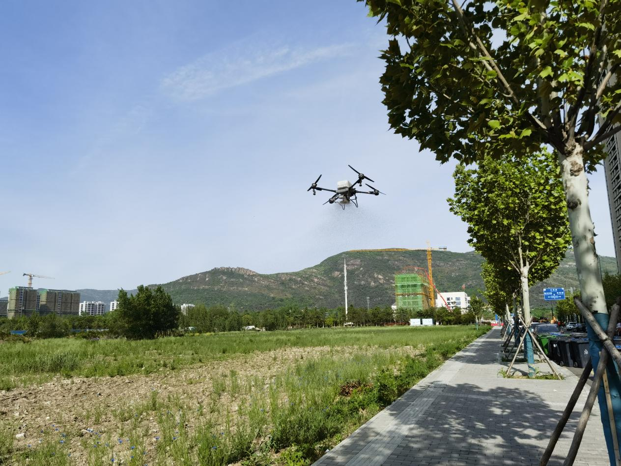 当天交培公司无人机事业部共出动两台无人机,播种了约2000斤混合花种。原来2000斤的花种,人力播撒的话需要3~4天的时间才可以完成,而且播撒的可能也不是那么均匀,而无人机可以按照预设作业路线、亩用量、行距等指标参数来进行播种,播撒密度均匀,只需几个小时就可以轻松完成,大大提高种植效率。