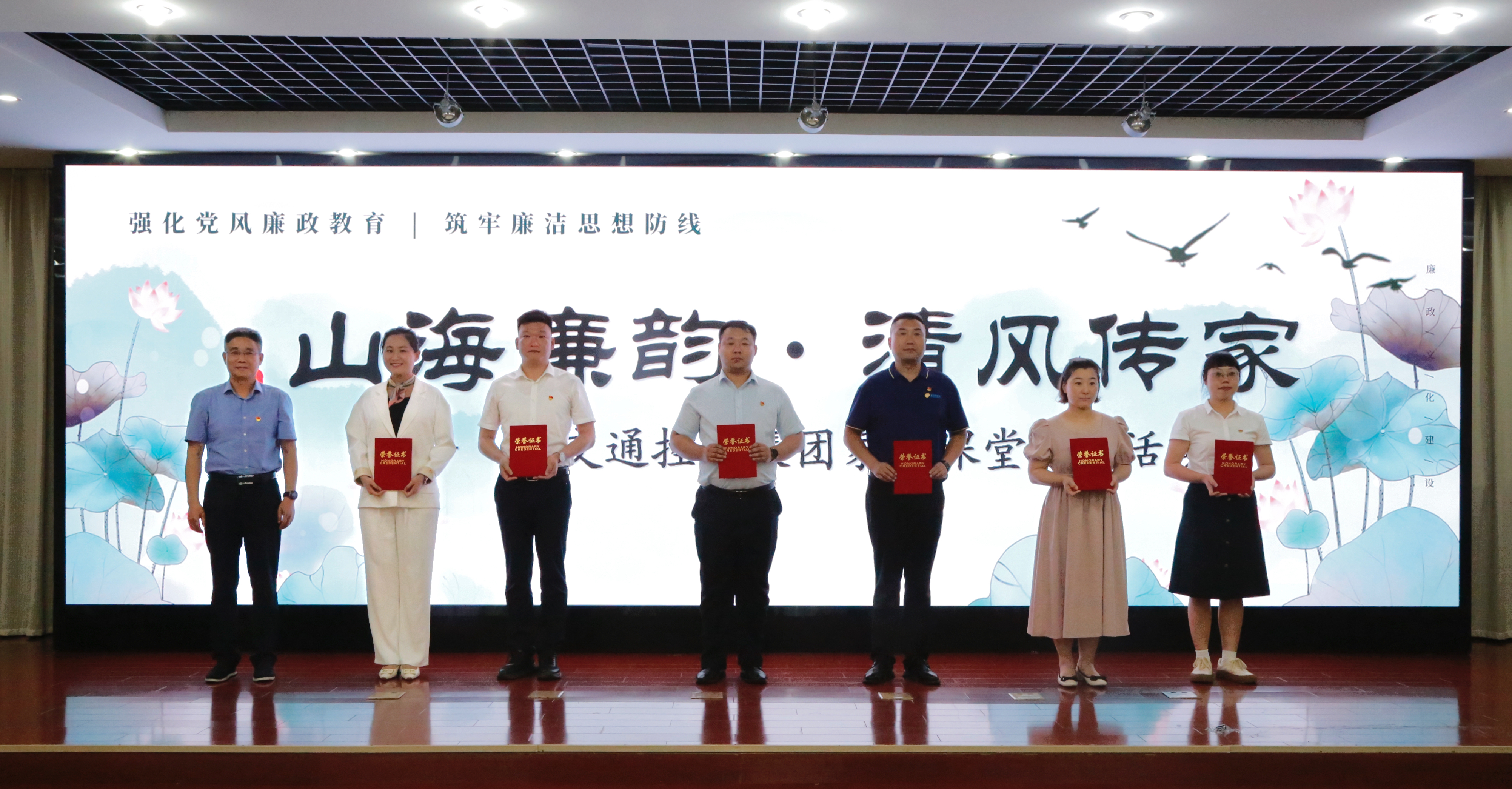 活动最后,乐鱼手机版app-乐鱼(中国)总经理、党委副书记、副董事长孙中华向与会党员干部家庭代表赠阅廉洁读本,乐鱼手机版app-乐鱼(中国)党委书记、董事长仲伟涛组向本次专场活动分享党员发放乐鱼手机版app-乐鱼(中国)“山海廉韵 清风传家”家风课堂优秀分享人证书。