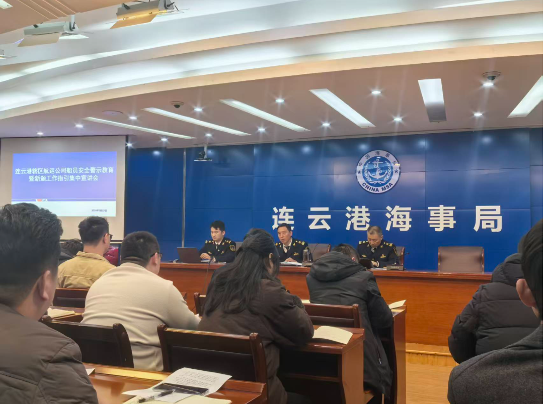 2月25日,连云港海事局组织开展“全国船员安全警示教育活动”,云济公司受邀参加。本次活动由船舶处、船员处联合牵头组织,旨在强化船员安全管理、筑牢商渔船防碰撞防线,进一步落实水上交通安全责任。