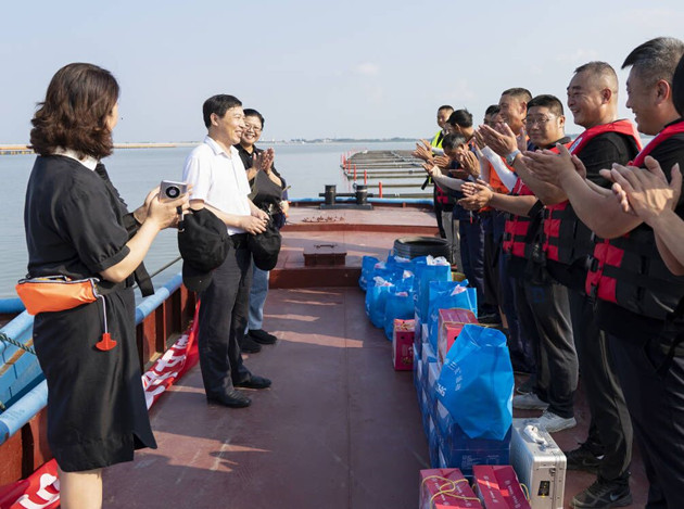 近日,乐鱼手机版app-乐鱼(中国)开展2022年夏季安康“三送”(送清凉、送安全、送法律)活动,乐鱼手机版app-乐鱼(中国)总经理仲伟涛,党委副书记、工会主席陈金师一行先后来到西城公交总站、新浦汽车总站、市区道路养护分公司猴嘴工区、石梁河采砂项目部、海陵湖养殖公司等一线场所,看望慰问奋战在高温下的一线职工,为他们送去矿泉水、洗漱套装、人丹、风油精、桃子等物品,以及《工会劳动保护工作手册》《如何保障劳动安全》《安全生产法》等安全生产法律书籍。