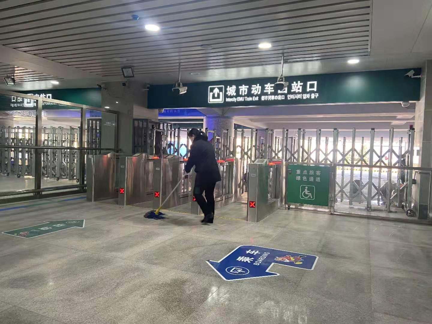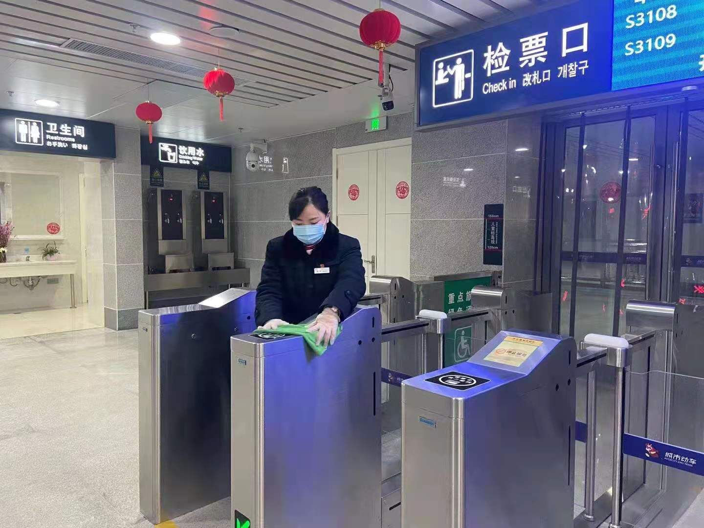 连云港城市动车作为连云港市交通运输的重要枢纽,每天迎来四面八方的旅客,疫情当前,我们要做好守护生命的第一条防线。首先,站务员按时到岗、测量体温并做好记录,消毒擦拭闸机、安检仪、座椅等乘客能接触到的设施设备及候车室地面、卫生间等全面消毒。同时,监测每位乘客体温,确保乘客安全。列车到站后的车厢也进行了全面消毒。面对来势凶猛的疫情,高速路口封了,农村路堵了,客运班线停运了,公交也只剩四条线路在运营,而我们城市动车依然正常运行,城市动车工作人员依然坚守岗位。面对疫情,怕吗?怕,但是我们明白什么是责任,什么是使命。