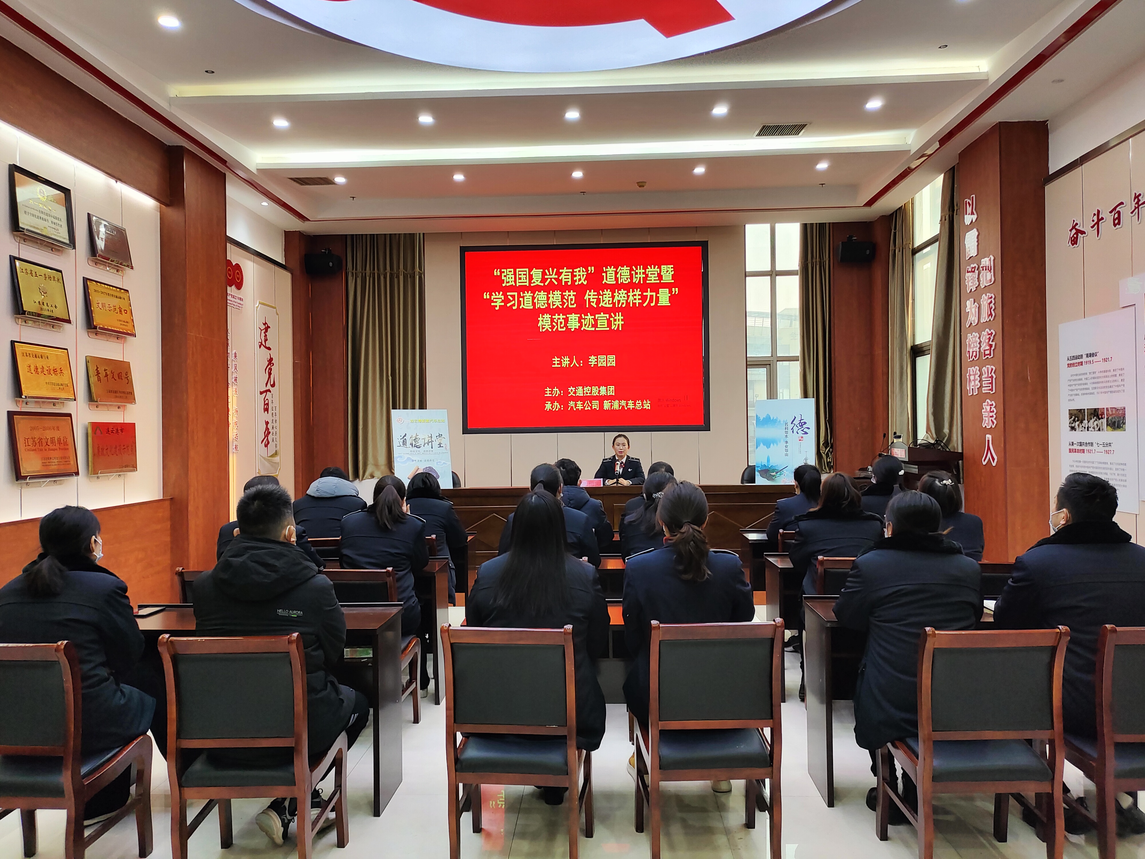 为认真落实“强国复兴有我”道德讲堂暨“学习道德模范 传递榜样力量”主题宣传教育活动,12月7日下午,由交通控股乐鱼手机版app-乐鱼(中国)主办,汽车公司、新浦汽车总站承办的道德模范进讲堂活动在新浦汽车总站二楼党员会议室开讲。活动邀请市五一劳动奖章获得者、第六代“雷锋车”手李园园宣讲,公司领导班子及干部职工代表30余人参加活动。