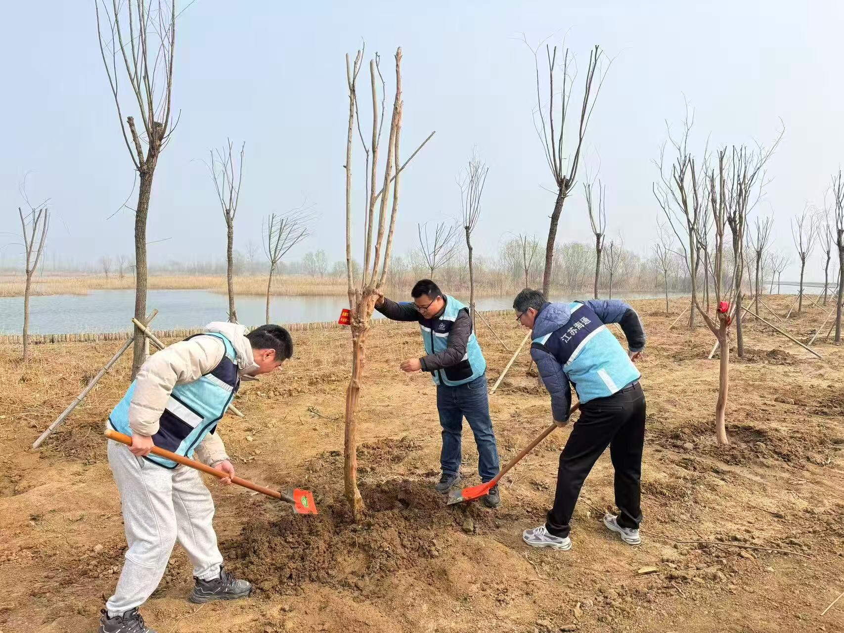活动现场,大家热情高涨、干劲十足。松土、挖坑、扶苗、培土、浇水等等每一道工序都细致严谨,配合默契。铁锹翻飞间,新栽的天鹅绒紫薇树苗、垂柳树苗整齐挺立,在春日的微风中焕发出勃勃生机。经过一番忙碌,多株新苗扎根沃土,为湖畔增添了一抹鲜亮的绿色,也为践行“绿水青山就是金山银山”理念,贡献了公司的一份力量。