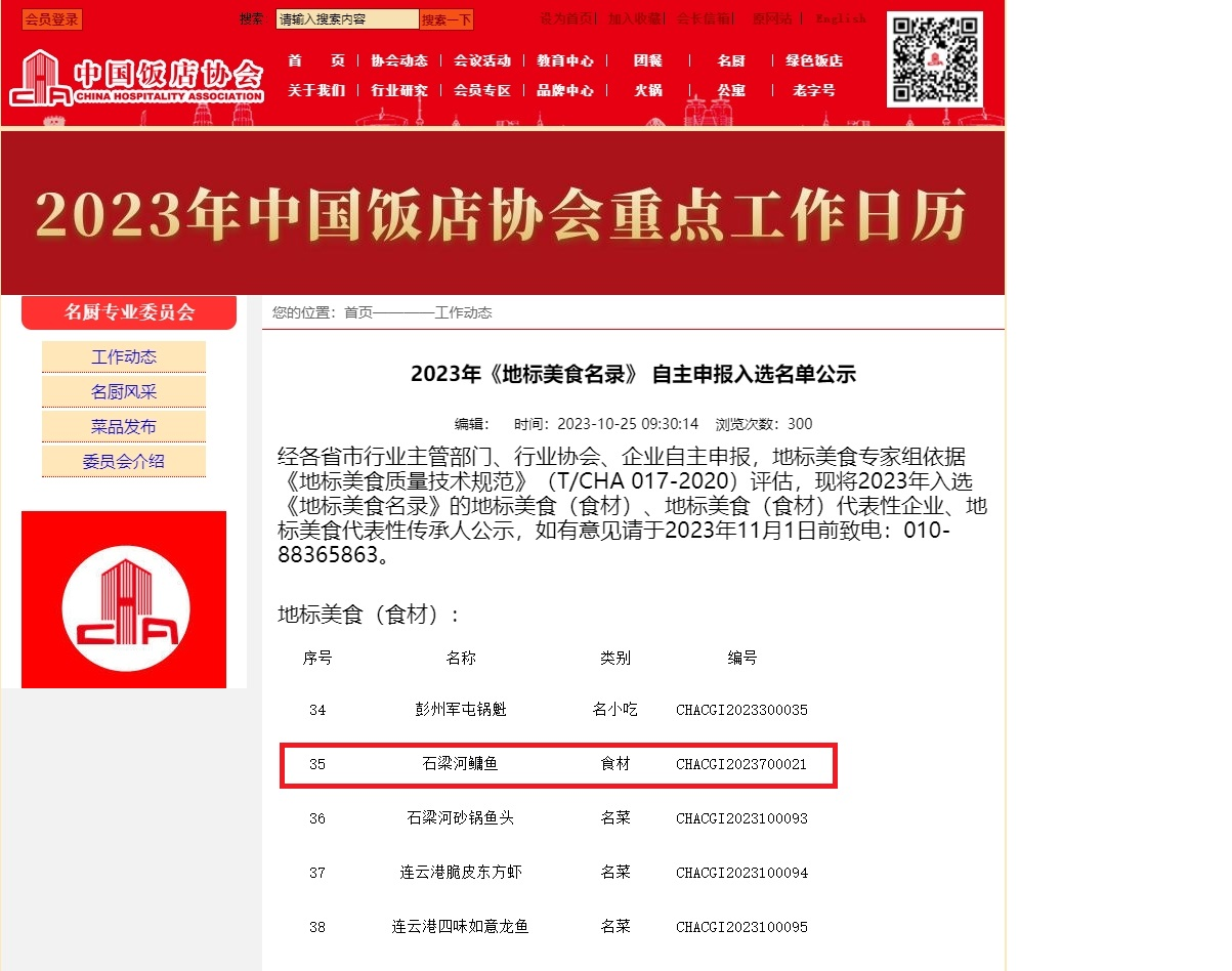 近日,石梁河鳙鱼成功入选中国饭店协会《地标美食名录》,标志石梁河鳙鱼得到美食食客的高度肯定。