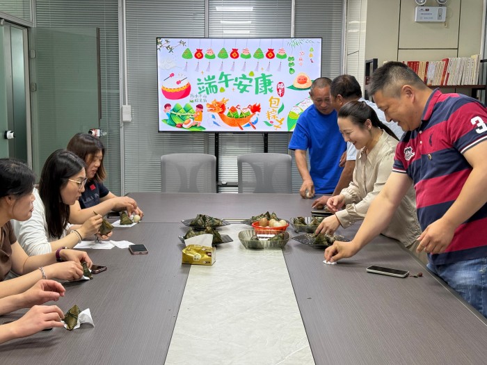 活动现场,热气腾腾的粽子被工会工作人员端上会议室的长桌,大家围坐在一起,一边品尝软糯香甜的粽子,一边分享端午家乡习俗,会议室里飘着粽香,混着笑声,活动现场大家欢声笑语,洋溢着浓浓的节日气氛。