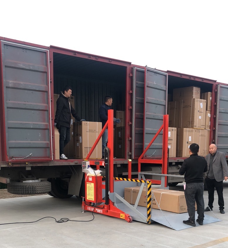 10月1日,自连德物流公司承接美的旗下安得物流徐州-连云港电商、网批分拨点运输业务以来,每日配送量在40-100方不等,单件货物重量可达20-100公斤,仅装卸成本需要1万元/月。此次购置的移动装卸平台仅需按动一个按钮就可将9.6米、4.8米货车上的货物运送至平地,配合单门架半电动堆高车便可以轻松地把货物进行分装。这些简单的操作步骤在很大程度上降低了货物在装卸中的破损率,减轻配送人员劳动强度,无需增加装卸人员便可完成货物装卸工作,大大节省了装卸成本。