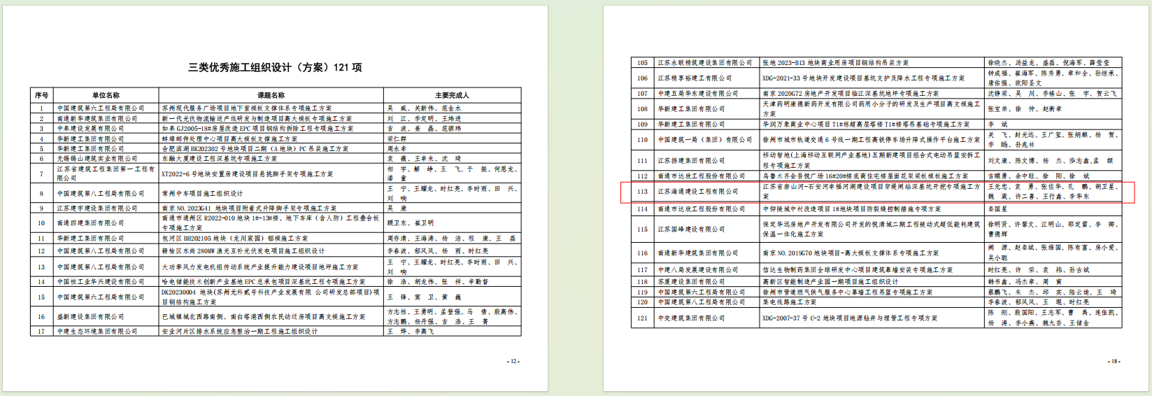 近日,江苏省建筑行业协会正式发布2024年度江苏省建筑业优秀施工方案评价结果。海建公司申报的两项施工方案荣获表彰,其中《K7+047.6跨204国道大桥钢箱梁安装专项施工方案》获评江苏省建筑业二等优秀施工方案,《穿堤闸站深基坑开挖专项施工方案》获评三等优秀施工方案。