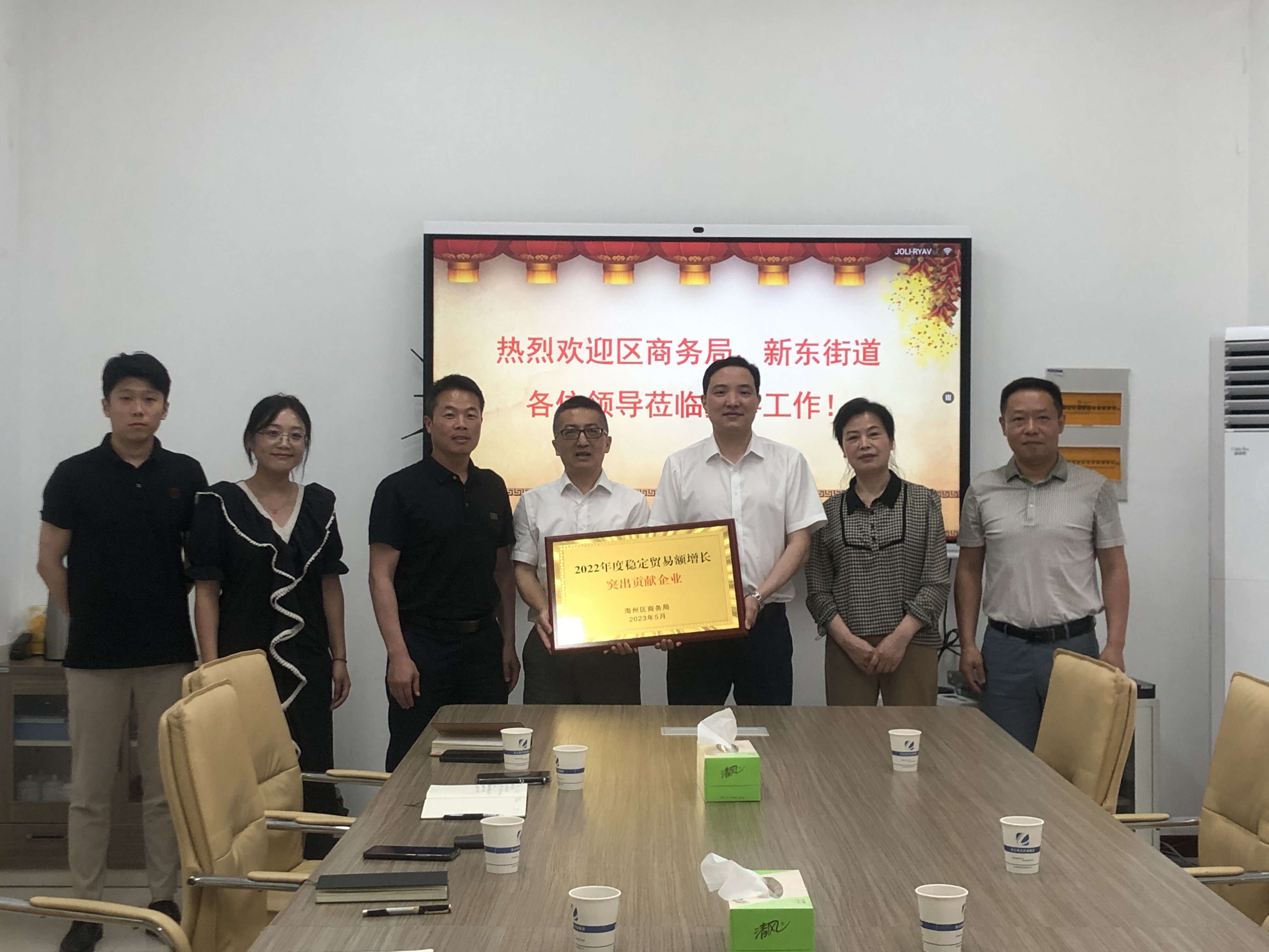 海州区商务局、新东街道办事处相关领导联合为中化交控能源公司授牌。
