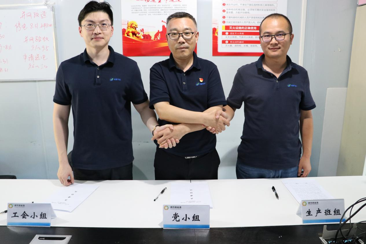 8月28日下午,明茂权属港嘉公司党支部在“党校光伏建设”项目现场举行“三组联建”共建协议的宣贯会及签约仪式。此次会议和签约旨在进一步加强和规范党支部建设,抓基层强基础,切实将党的建设贯穿至最前线,使党小组工作融入生产班组中心工作,渗透工会小组工作,更好地聚合党小组、生产班组和工会小组合力。