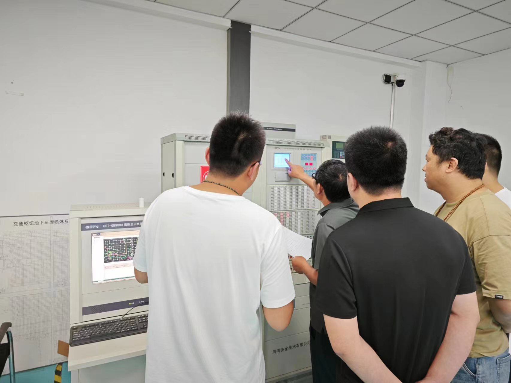 消防技能考核在地下停车场消监室进行,考核内容涵盖理论知识和实际操作。重点包括消防控制室中央集中控制器操作、消防系统故障排除、火灾报警记录查看、火灾报警位置查看、正压送风机操作及复位等内容进行现场模拟操作,切实摸清消控室操作员实操处置能力水平,找准消防安全管理中的薄弱环节。