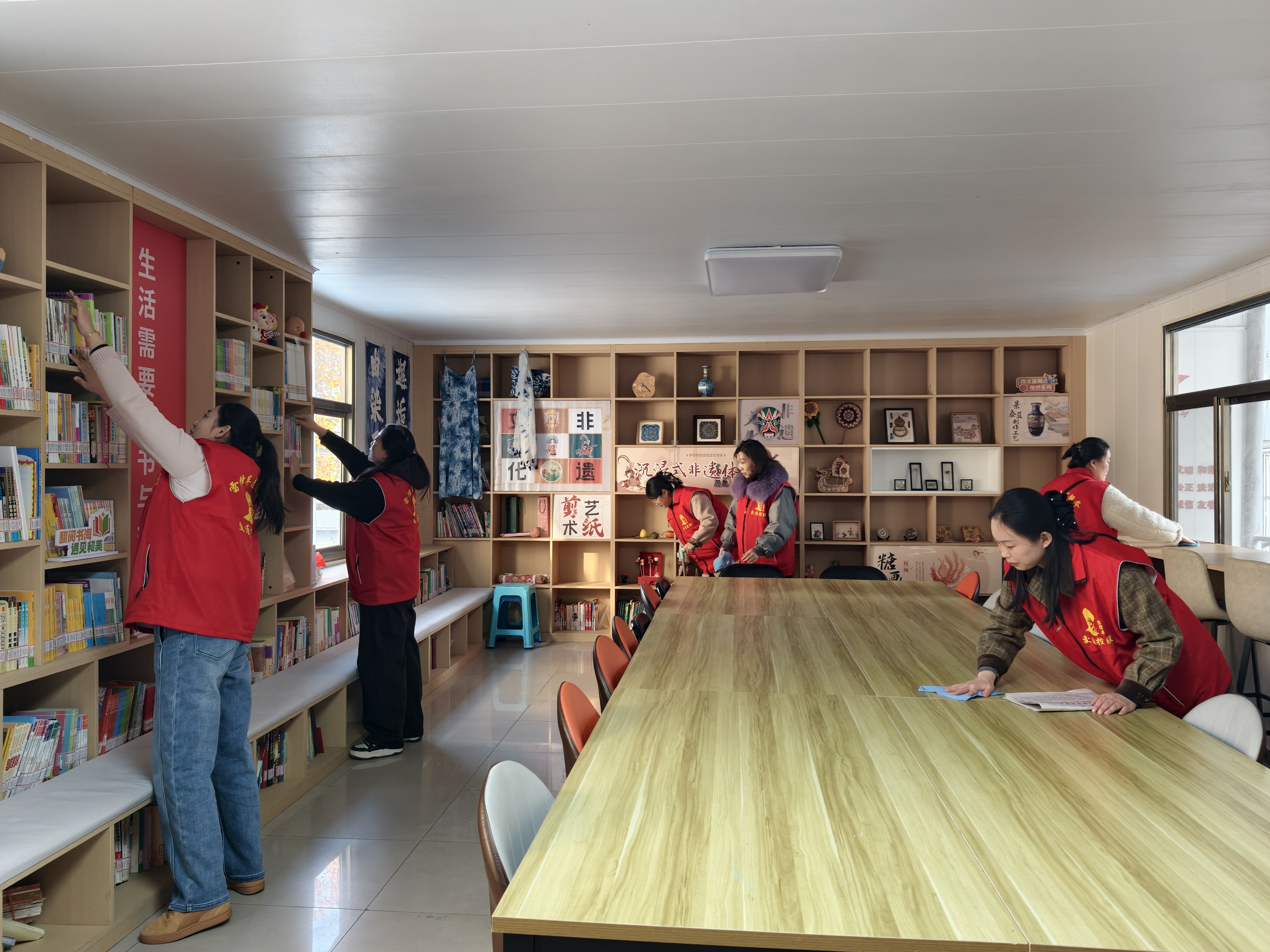 活动当天,志愿者们身着统一志愿服装,携带扫帚、抹布、消毒液等清洁工具,迅速投入到各个服务点位。在残疾人之家与辅助性就业室,志愿者们细心擦拭桌椅、整理康复器材与就业工具,清理地面杂物与卫生死角,对高频接触区域进行消毒消杀,为残疾人群体营造安全、整洁、舒适的活动与就业环境。在乐龄图书室,大家有序整理书架上的书籍报刊,按类别进行分类归置,擦拭书架灰尘、清扫地面碎屑,让老年朋友们能在清爽整洁的环境中享受阅读乐趣。