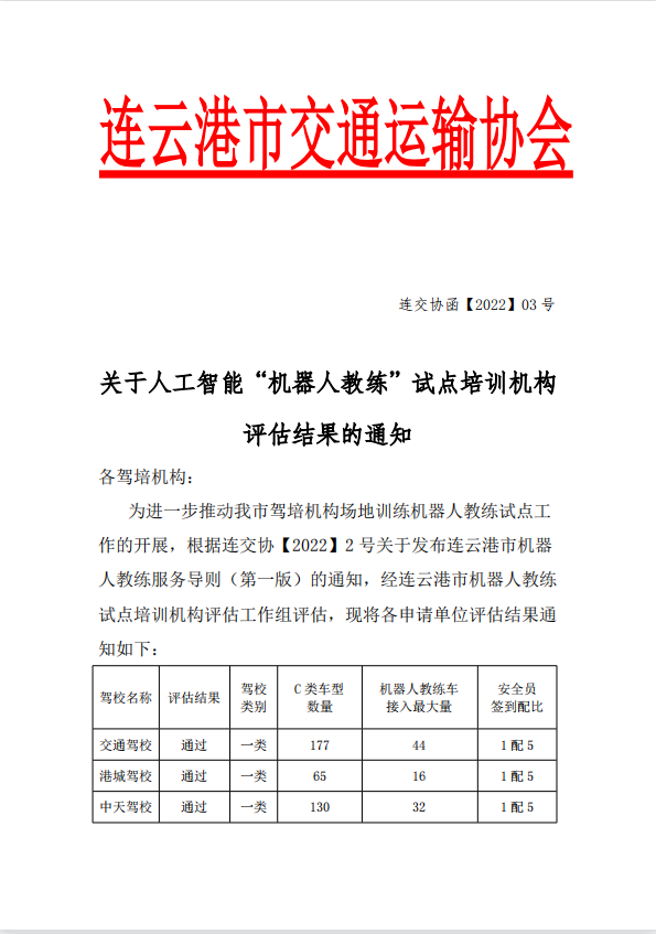 本次共5所驾校被评为机器人教练试点培训试机构,是连云港市驾培行业全面推进教育信息化的一个小小缩影。近年来,驾培行业持续强化信息基础设施建设,推动大数据、人工智能等新一代信息技术与教育教学各个环节进行融合,智慧教育环境扩面提质,优质数字资源持续供给,不断探索“互联网+教育”新模式与新应用,引领和促进教育现代化。