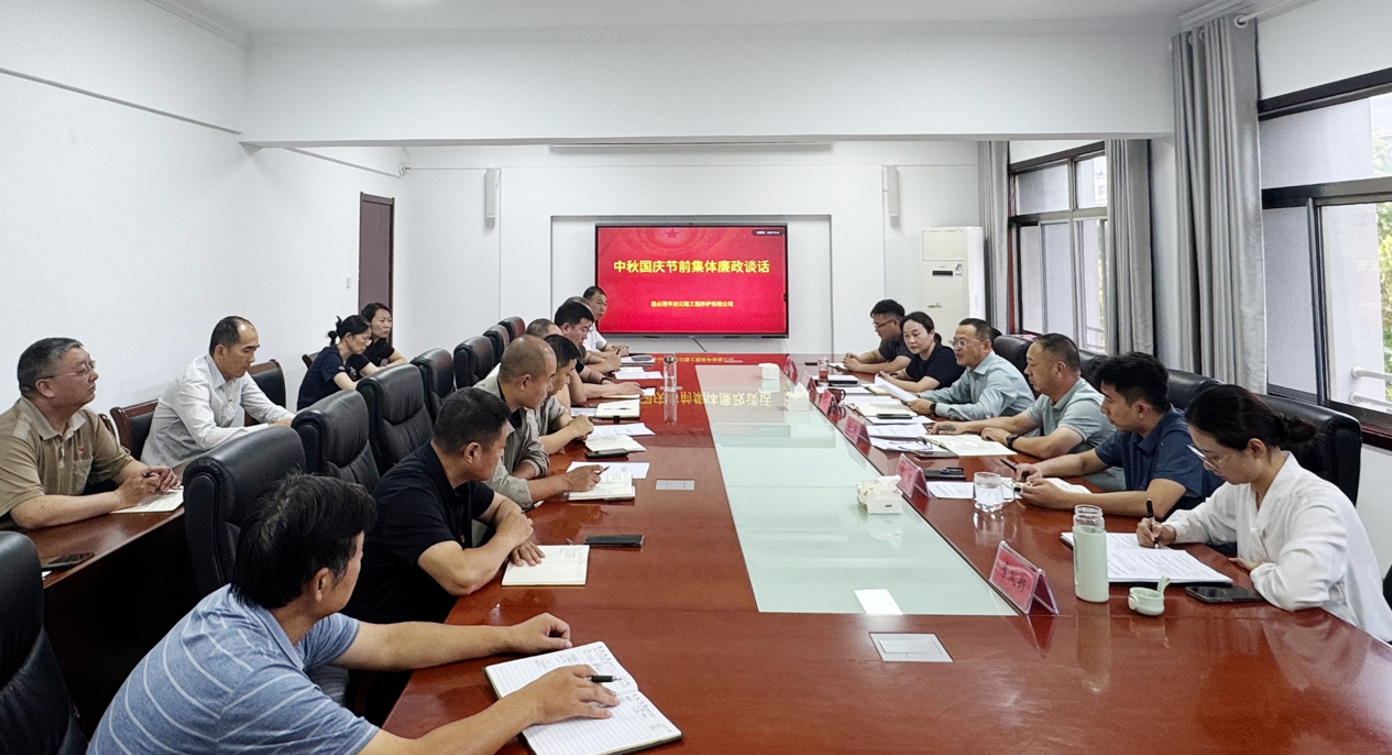 中秋、国庆双节将至,为持续巩固拓展作风建设成效,进一步筑牢干部职工廉洁自律防线,丰达公司于近日组织召开节前集体廉政谈话会议。会议由公司党总支书记、董事长王梁洲主持,公司领导班子成员,公司各部门、分(子)公司主要负责人参加会议。