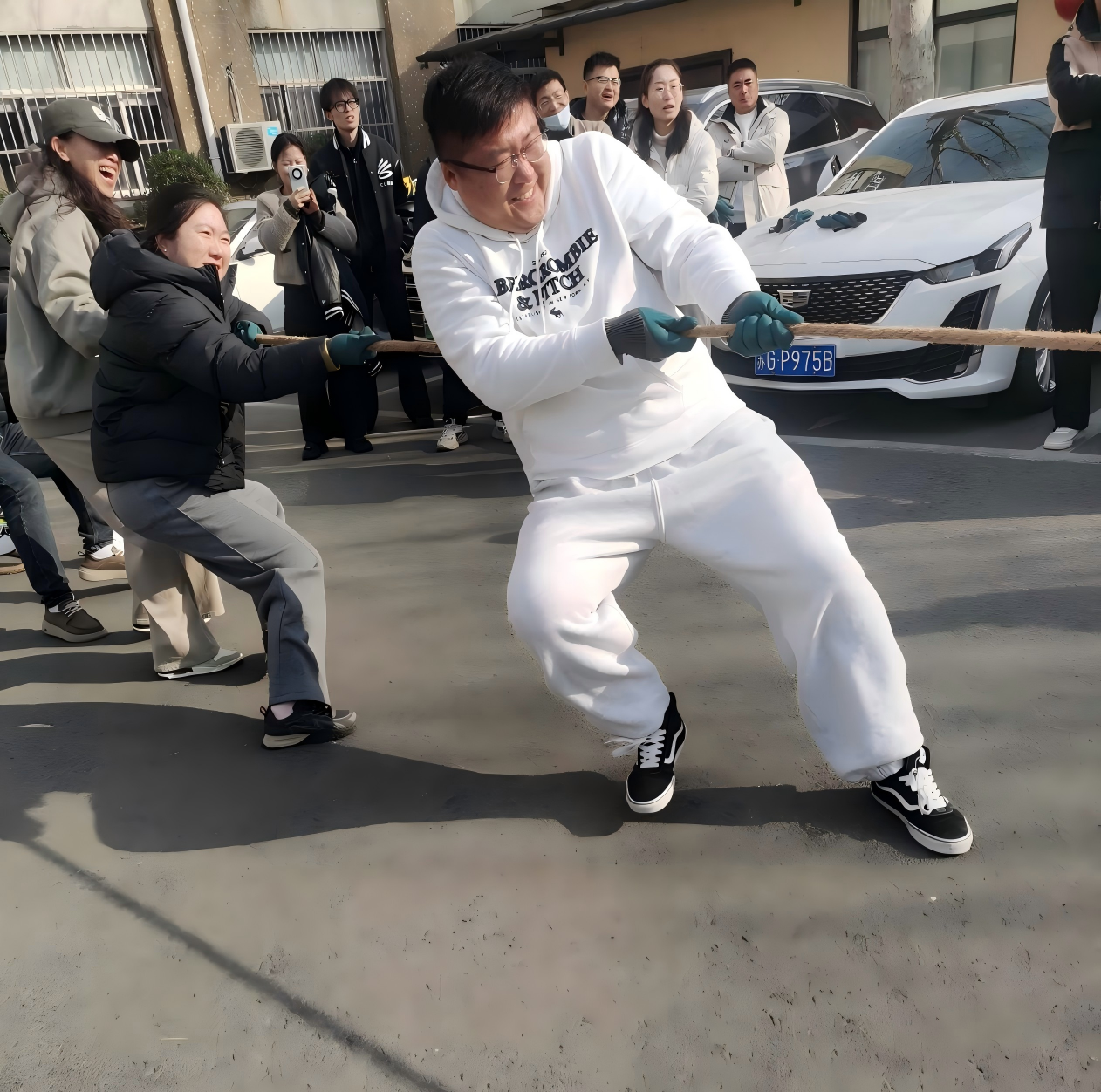 “马”力全开,“绳”彩激昂拔河比赛中,现场气氛紧张激烈。参赛队伍齐心协力,紧握长绳奋力拼搏,场边助威呐喊声此起彼伏,充分展现了团队的力量与斗志。