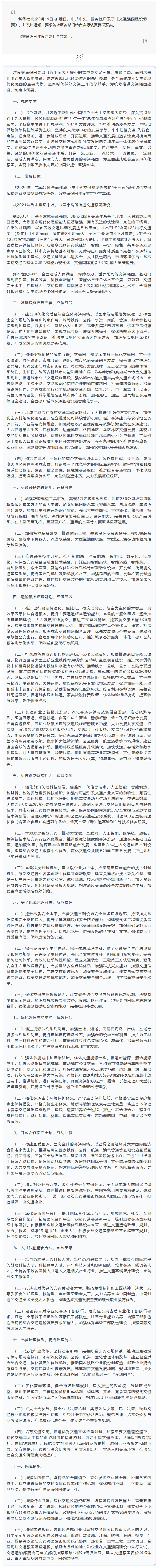中共中央、国务院印发《交通强国建设纲要》