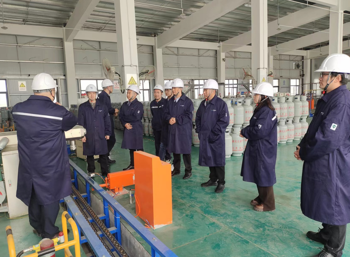 现场交流会上,华辰新能源有限公司经理张弓详细介绍了华辰能源公司瓶装液化气市场整合推进过程及整合后实际运营情况,三方就场站建设、站点、人员布置等情况进行了充分的讨论交流。会后,与会人员参观了华辰公司液化石油气全自动充装平台、监控监管平台、智能化管理平台等。