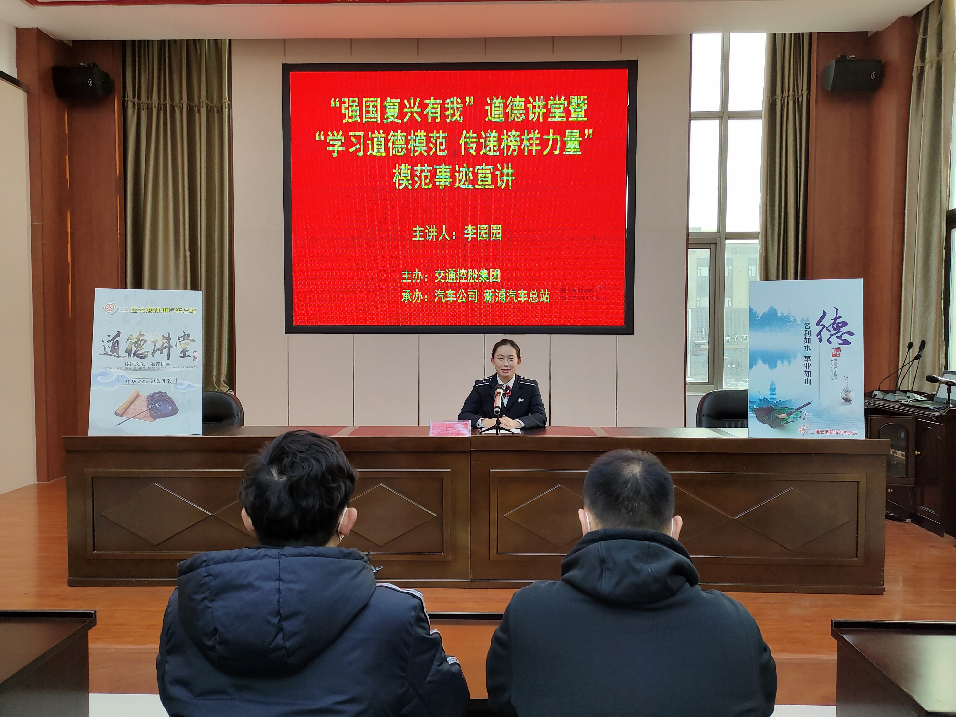 为认真落实“强国复兴有我”道德讲堂暨“学习道德模范 传递榜样力量”主题宣传教育活动,12月7日下午,由交通控股乐鱼手机版app-乐鱼(中国)主办,汽车公司、新浦汽车总站承办的道德模范进讲堂活动在新浦汽车总站二楼党员会议室开讲。活动邀请市五一劳动奖章获得者、第六代“雷锋车”手李园园宣讲,公司领导班子及干部职工代表30余人参加活动。